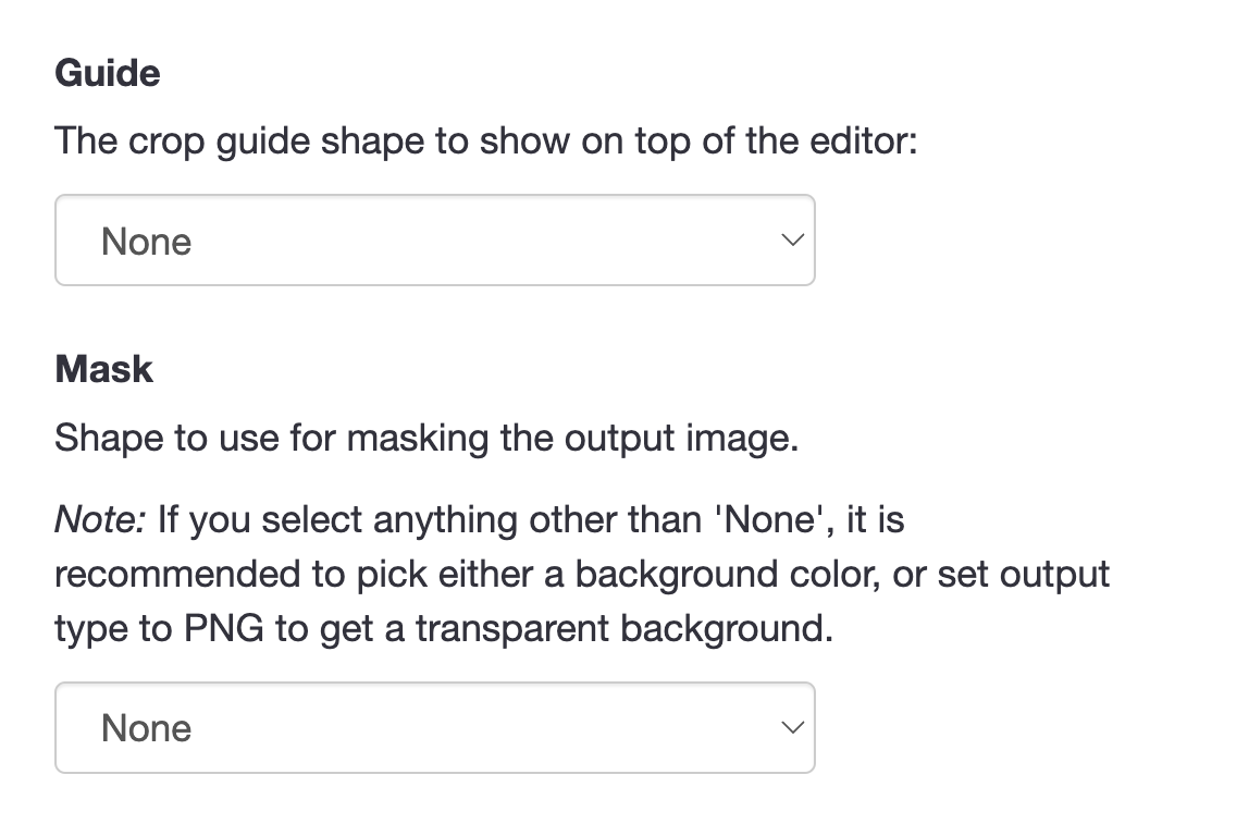 These two new options in the CropGuide dashboard configure the overlay and masking of the image cropper.